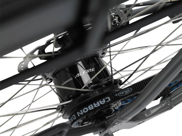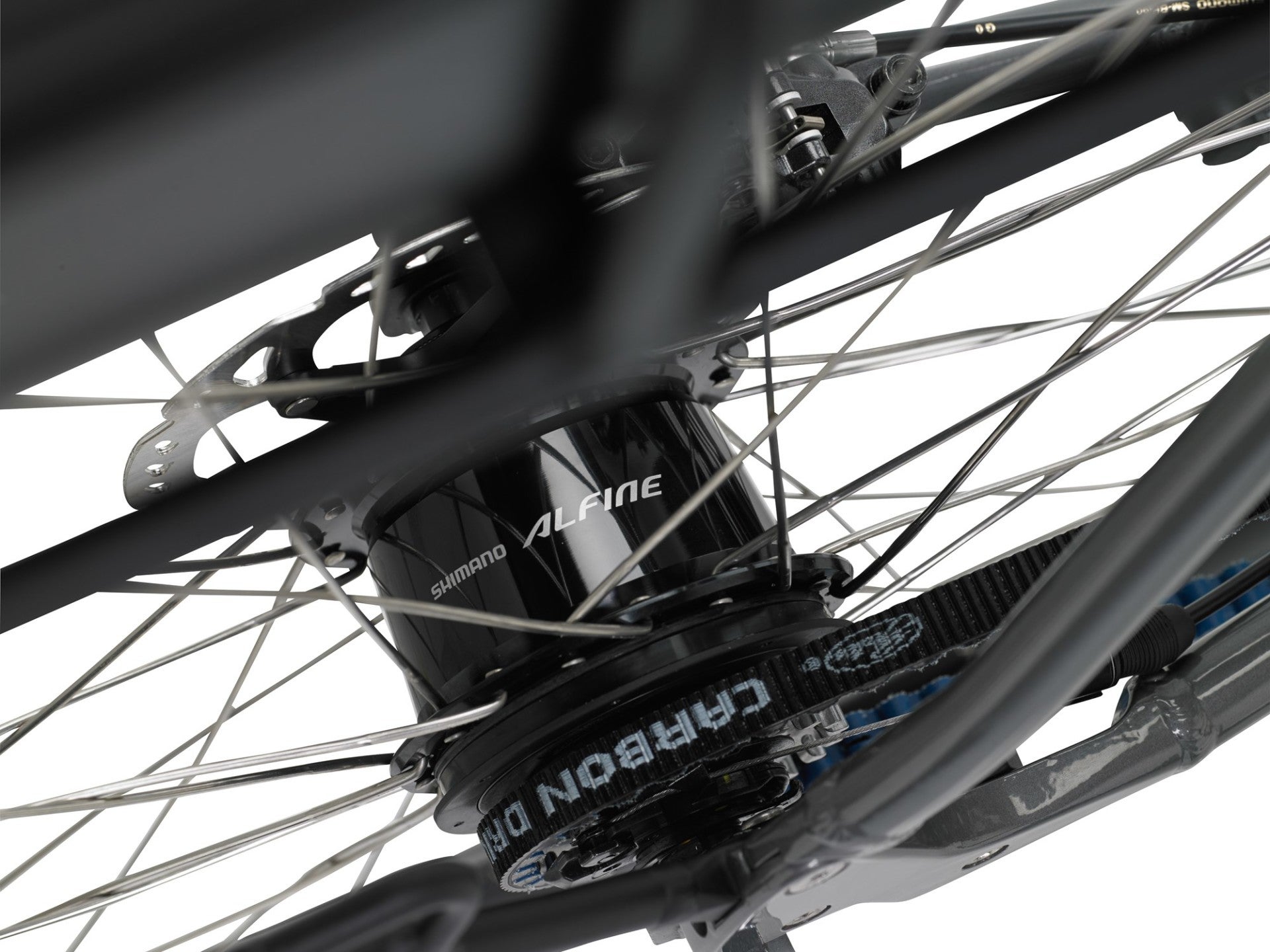 De Prestige EMB is hét topmodel onder de e-bikes. Het is een sportieve e-bike die beschikt over een Gates Carbon Drive riemaandrijving en Shimano XT remmen.